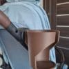 Dauguma modelių turi specialią vietą tokiam laikikliui pritvirtinti, todėl montavimas yra paprastas ir nereikalauja papildomų įrankių. Tai itin naudingas priedas tėvams, kurie mėgsta turėti gėrimo puodelį ar vandens buteliuką visada po ranka.